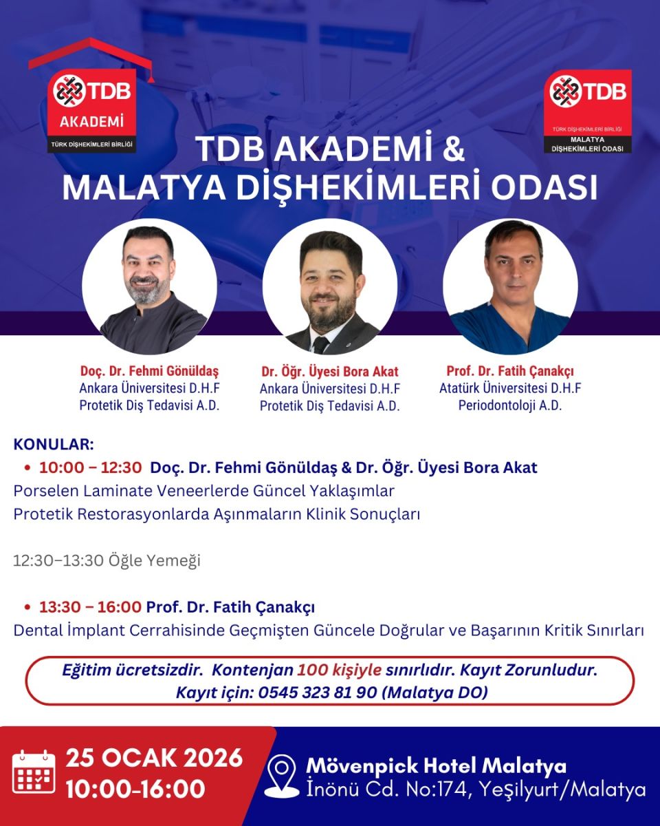TDB AKADEMİ – MALATYA DİŞHEKİMLERİ ODASI BİLİMSEL ETKİNLİĞİ (Revize edilmiştir)